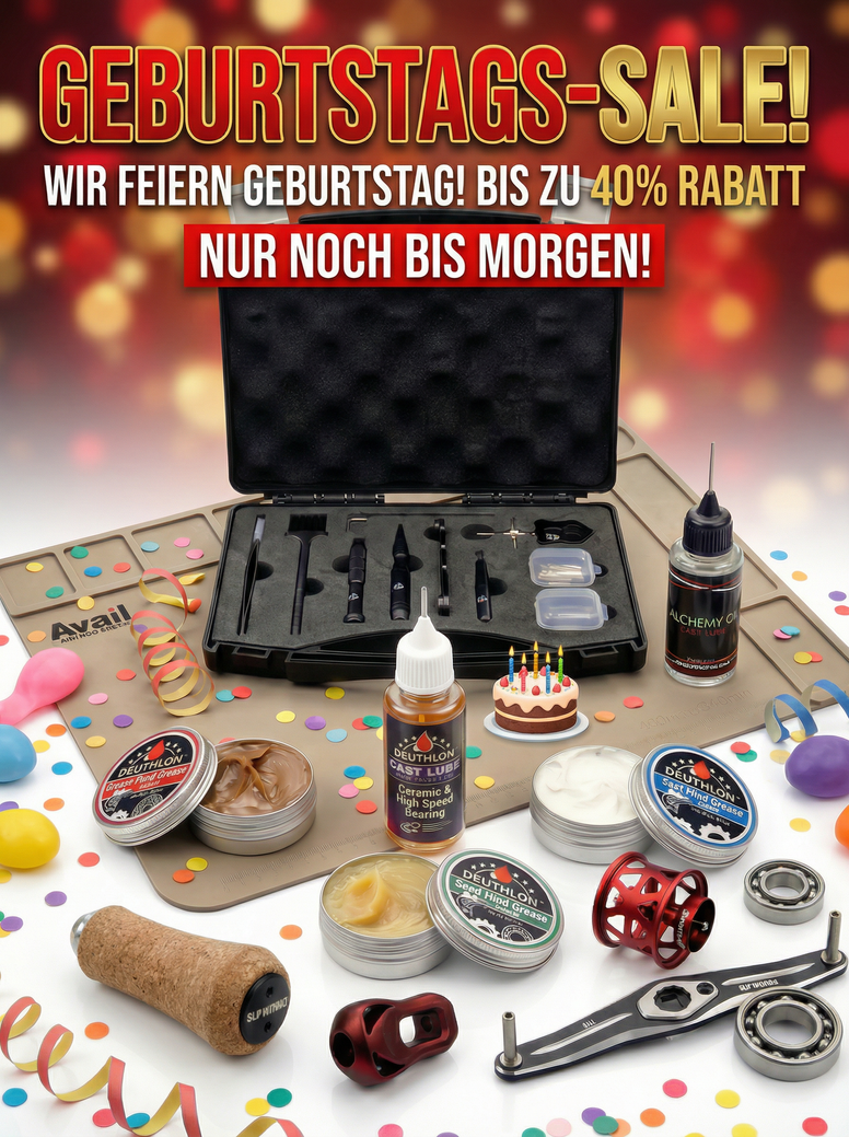Premium Rollenöl, Rollenfett und Werkzeug für die richtige Pflege. Damit deine Baitcaster oder Stationärrolle läuft wie sie soll – leise, sauber und zuverlässig.