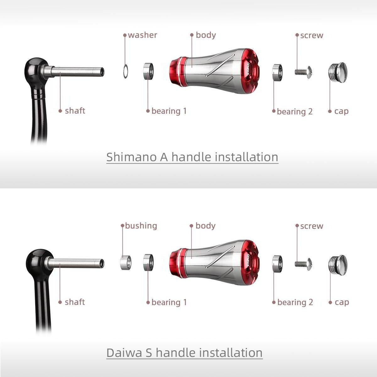 Die Knobs passen dabei sowohl auf deine Stationärrolle als auch auf deine Baitcasterrolle.