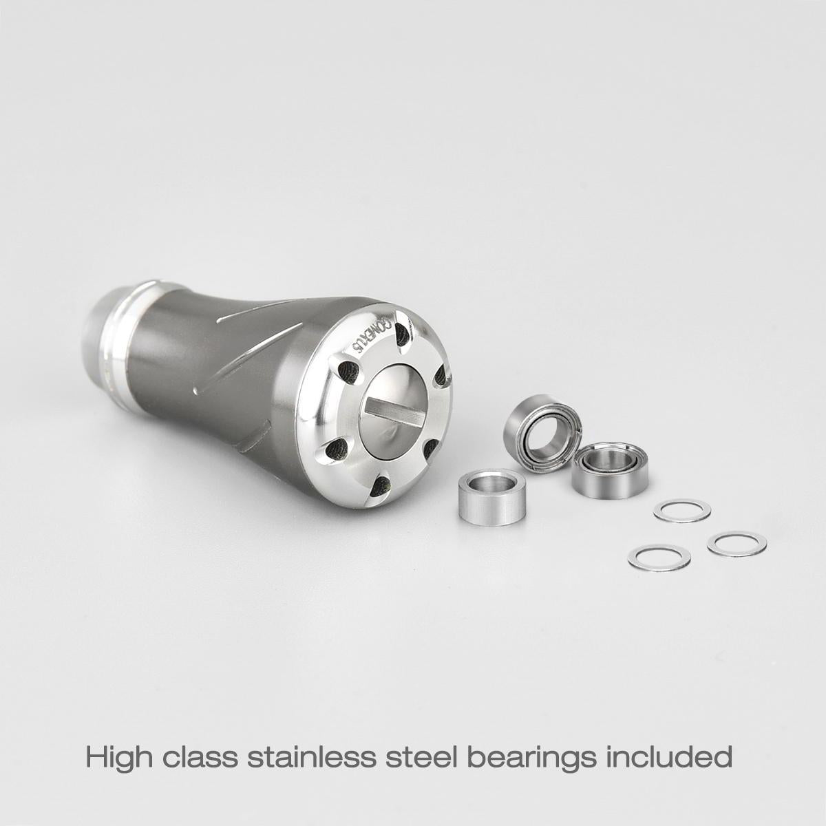 Verpass deiner Angelrolle einen ganz persönlichen Touch, mit dem CNC Knob von Gomexus aus Aluminium mit edlen Titanapplikationen.